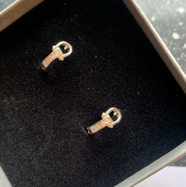 925 Sterling Silver Snaffle Huggies with Zircon