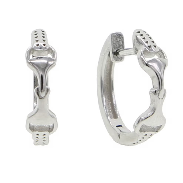Introducing the Snaffle Bit Huggie Earrings, a stylish and versatile accessory that can elevate any outfit. These earrings are available in three different finishes: 925 Sterling silver, 18k Rhodium Yellow plated, and 18k Rose Gold Plated.